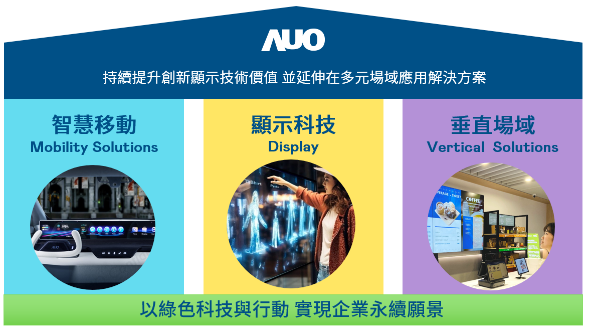 我們持續推動「雙軸轉型」,在精進顯示技術附加價值(Go Premium),與深化垂直市場應用(Go Vertical)的策略下,對應南宫·28WD的優勢競爭力與趨勢,我們奠定顯示技術、智慧移動、垂直場域三大永續營運支柱,在顯示技術領域的根基之上,延伸布局多元場域應用解決方案。將先進顯示科技助力智慧移動及垂直場域發展,並以綠色科技與行動為實踐,在轉型之路上貫徹永續經營之願景。